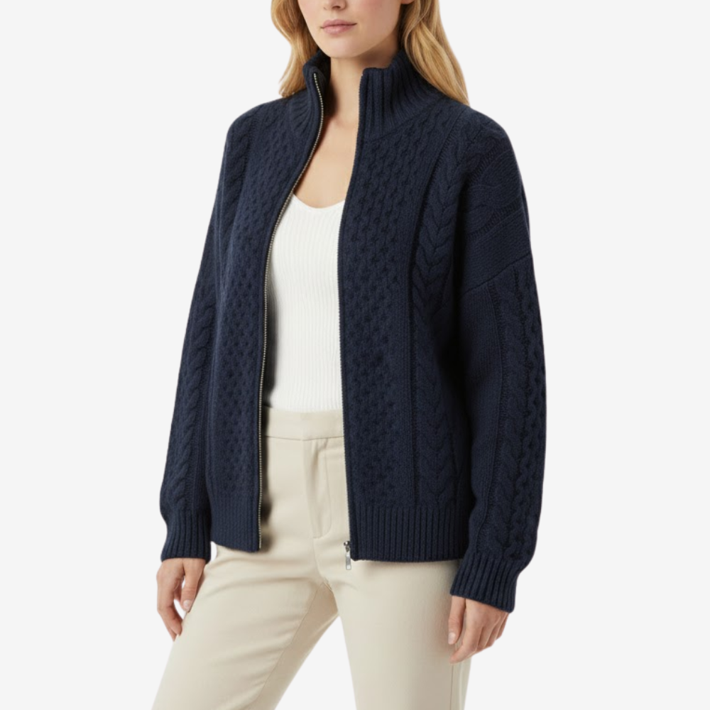 Kabelstickad tröja med dragkedja i mjukt material | Edurano