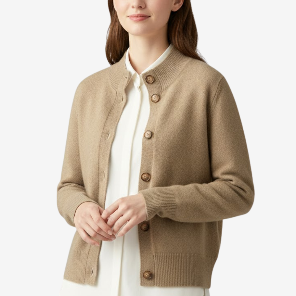 Denna stickade tröja i mjuk kashmirblandning erbjuder en elegant balans mellan komfort och stil. Med sin klassiska knappstängning och diskreta krage passar den lika bra till arbete som till vardagliga tillfällen. Det mjuka materialet ger en behaglig känsla mot huden och håller dig varm under kyligare dagar. Ett tidlöst plagg för den moderna kvinnan från Edurano.