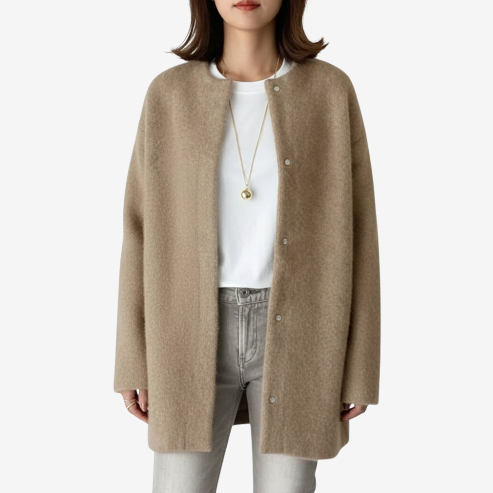 En varm och mjuk ullkofta med knappar framtill, skapad för att ge komfort under kyliga dagar. Den avslappnade passformen och det klassiska uttrycket gör den enkel att bära både till vardags och på jobbet. Materialet i ullblandning ger en behaglig värme samtidigt som plagget känns lätt och följsamt. Edurano presenterar en kofta som kombinerar funktion och tidlös stil i ett mångsidigt plagg.